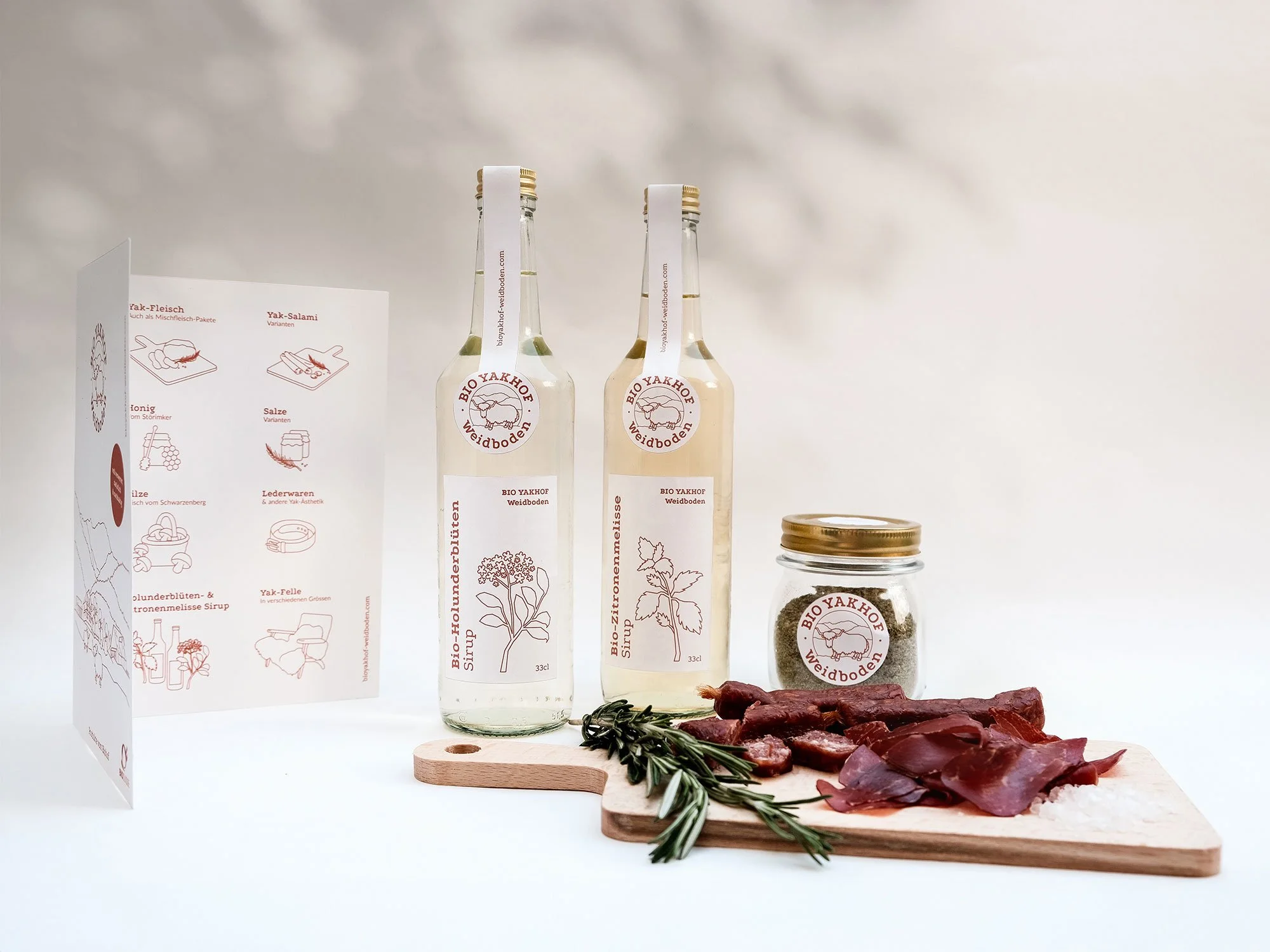 Für den Bio Yakhof Weidboden in Schwarzenberg durfte ich das gesamte Corporate Design, das Verpackungsdesign sowie das Screendesign entwickeln. Der visuelle Auftritt lebt von liebevoll gestalteten Illustrationen, einem charmant animierten Yak und einem stimmigen Farbkonzept. Dabei wurde bewusst nur eine einzige Farbe im Druck verwendet – das spart nicht nur Ressourcen und Kosten, sondern schont auch die Umwelt und führt den verantwortungsvollen Ansatz des Hofs konsequent weiter.