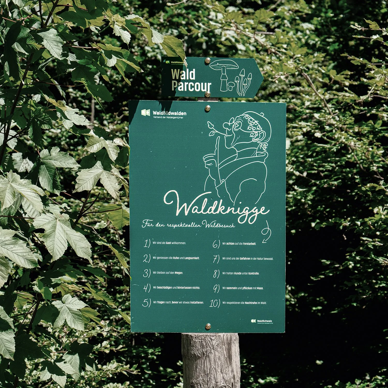 Während meiner Tätigkeit bei der Ellf GmbH durfte ich die Illustrationen für den Waldparcour im Brennwald Emmetten gestalten – anlässlich des 50-jährigen Jubiläums von Wald Nidwalden.